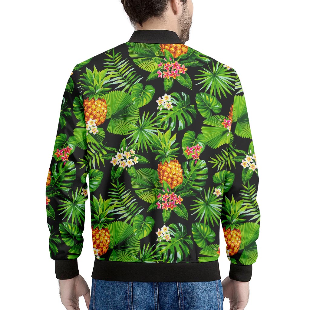 Black Hawaiian Pineapple Pattern Print Men’s Bomber Jacket