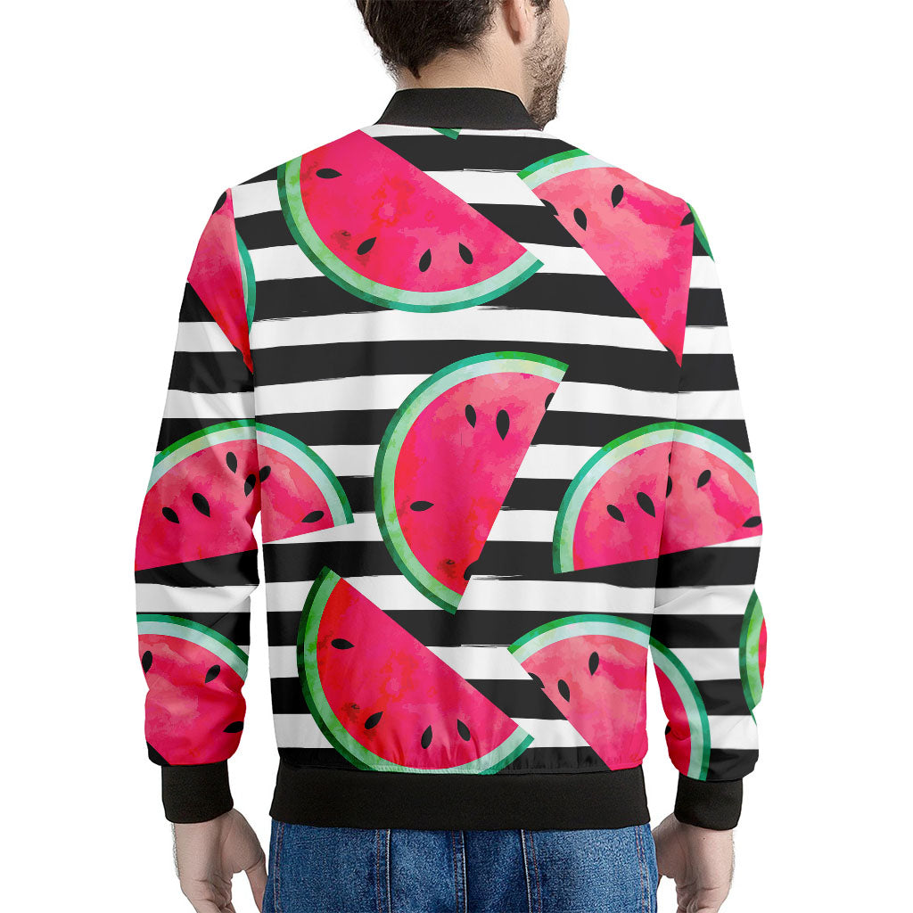 Black Striped Watermelon Pattern Print Men’s Bomber Jacket