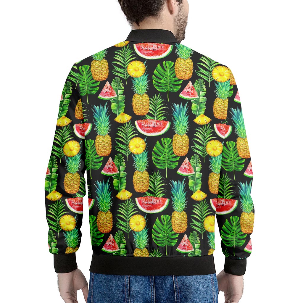 Black Tropical Pineapple Pattern Print Men’s Bomber Jacket