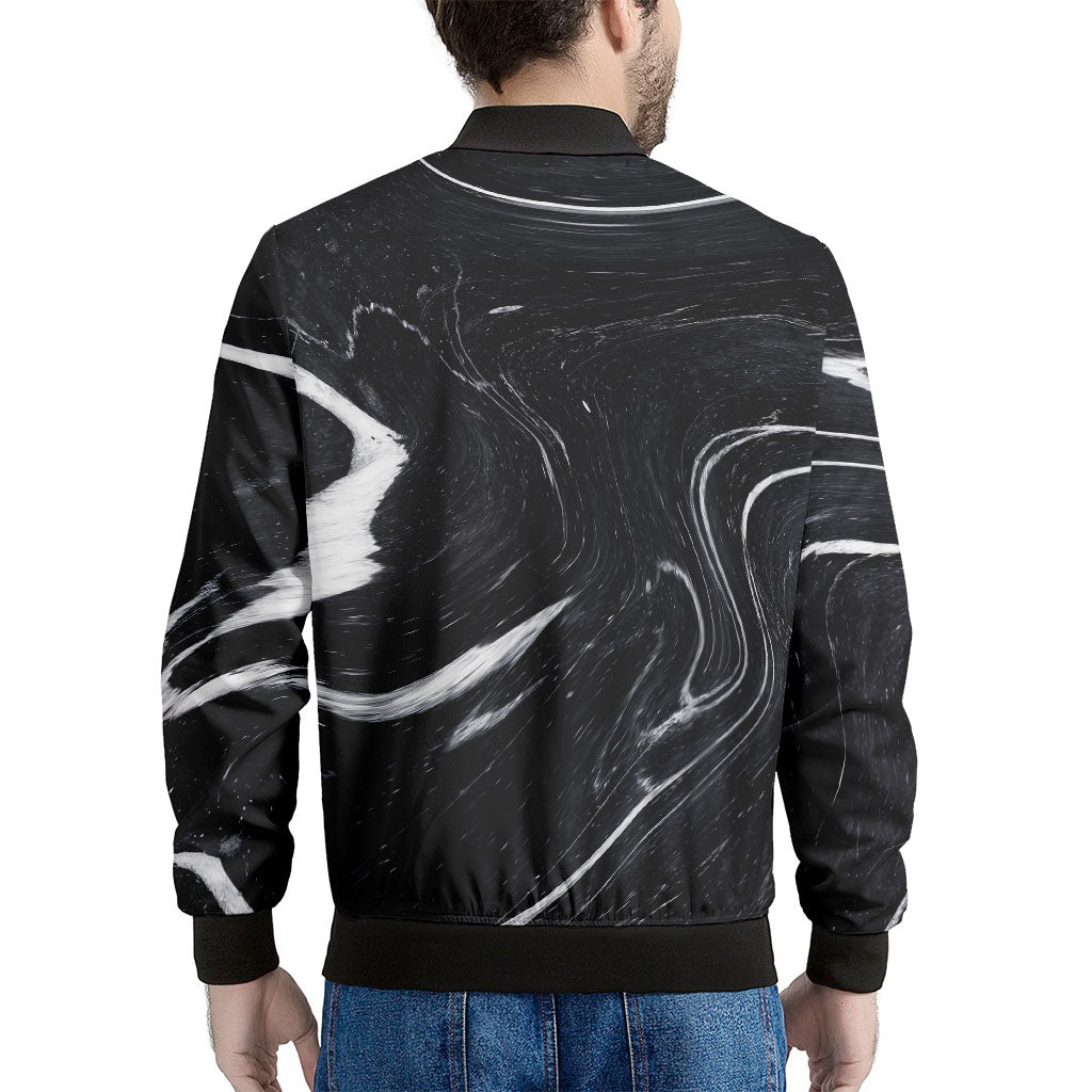 Black White Liquid Marble Print Men’s Bomber Jacket