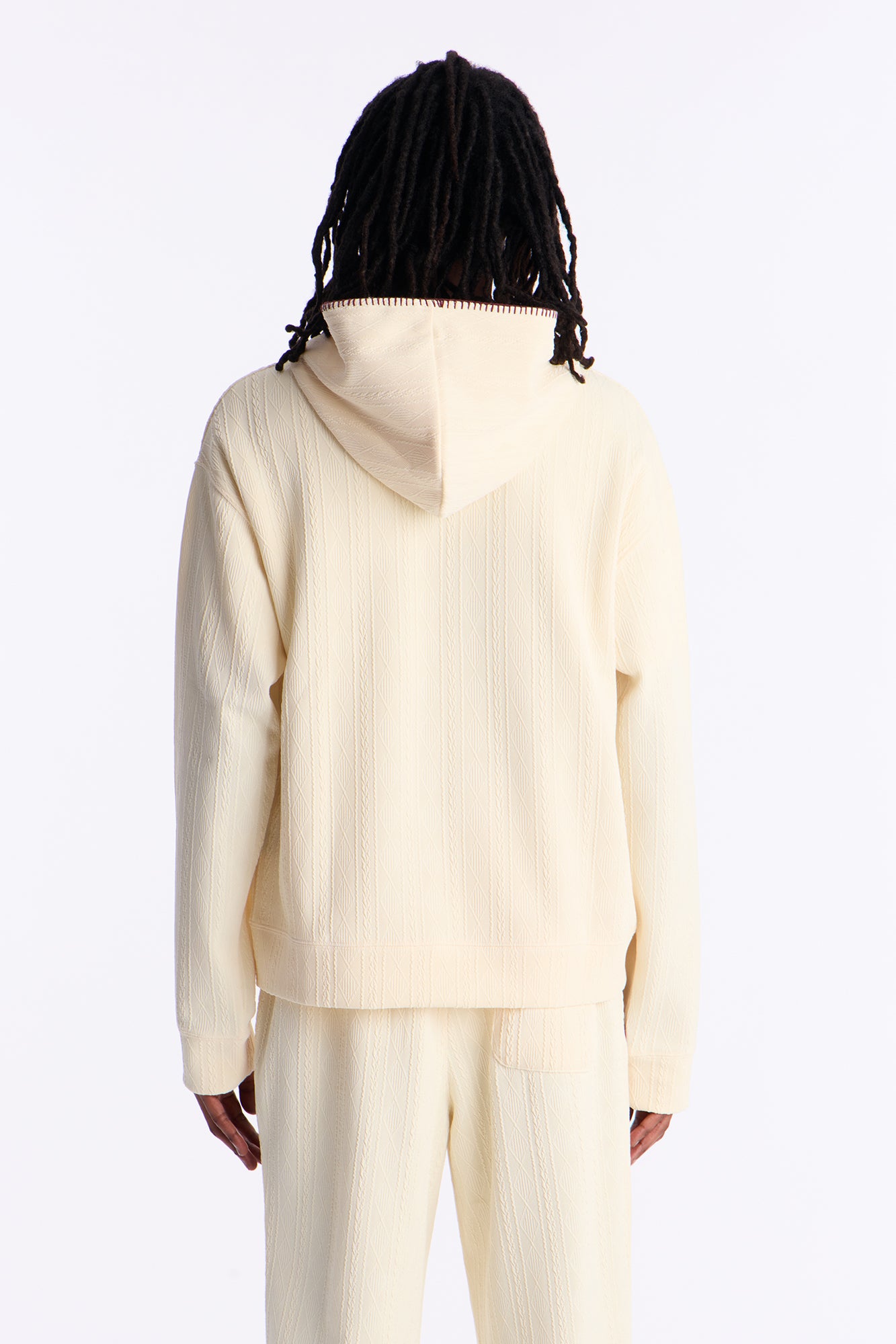 Cable Knit Textured Stitched Hooded Jacket in Cream