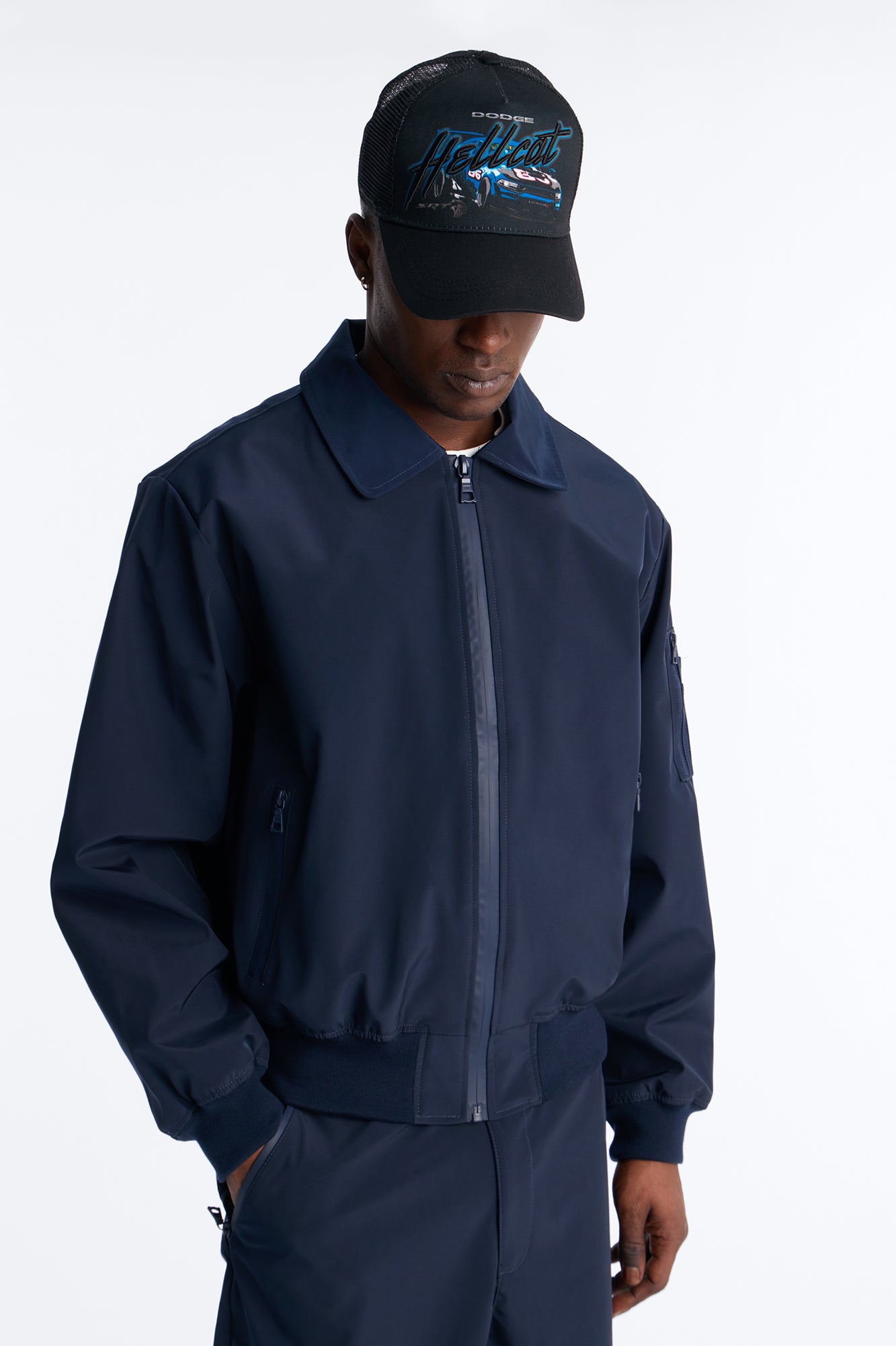 Cropped Relaxed Liberty Zip Bomber Jacket Navy – Women’s Fashion