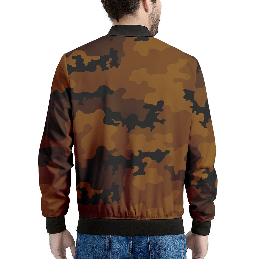 Dark Brown Camouflage Print Men’s Bomber Jacket