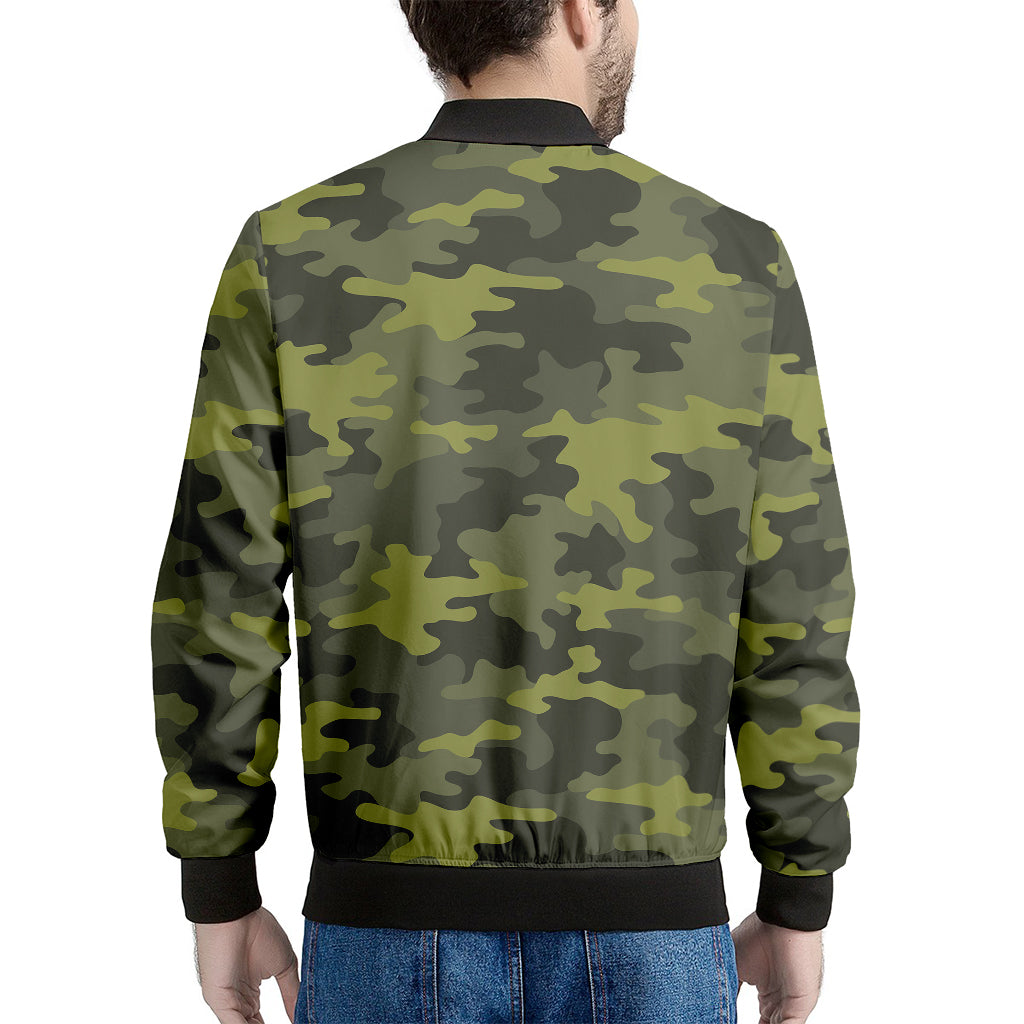 Dark Green Camouflage Print Men’s Bomber Jacket