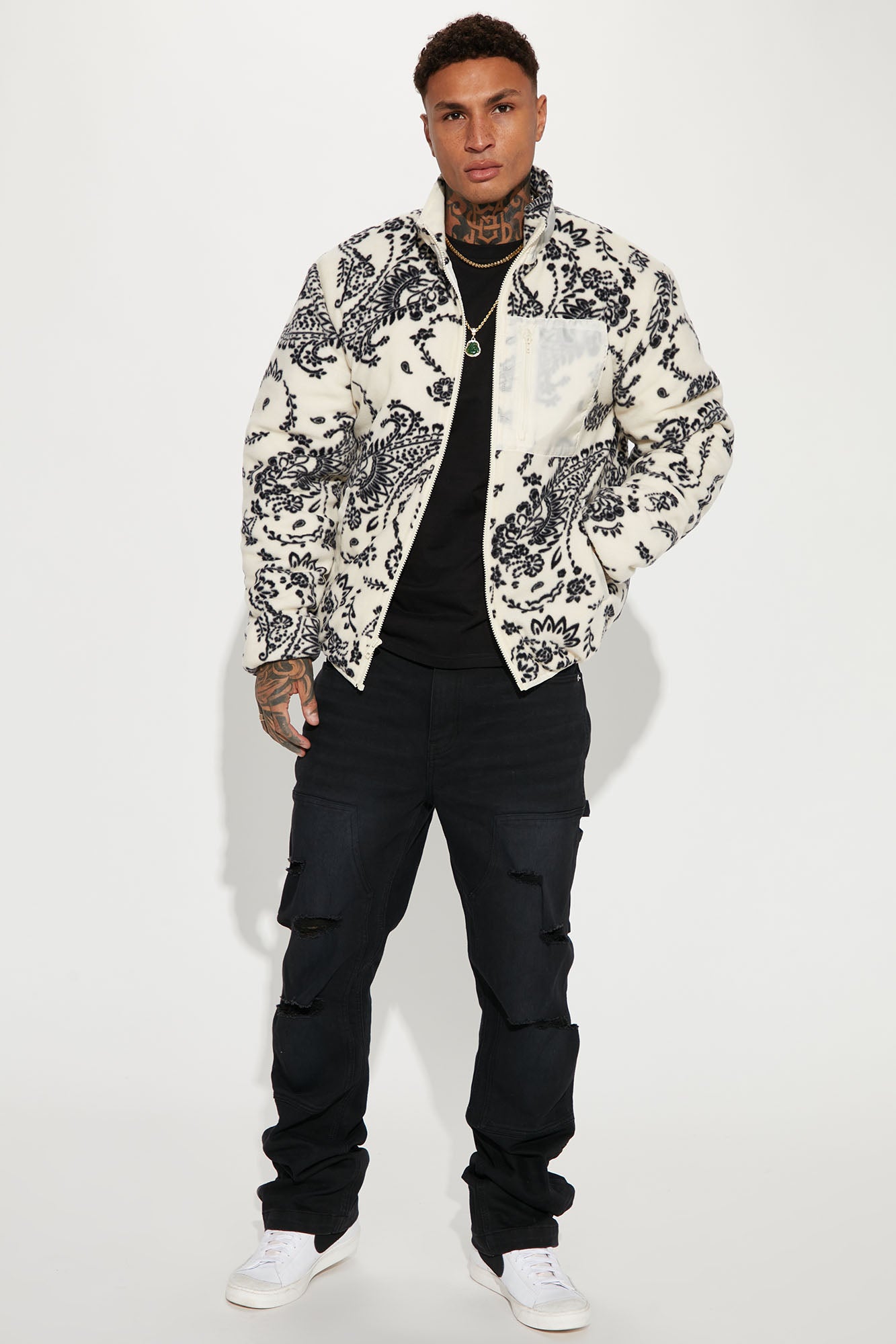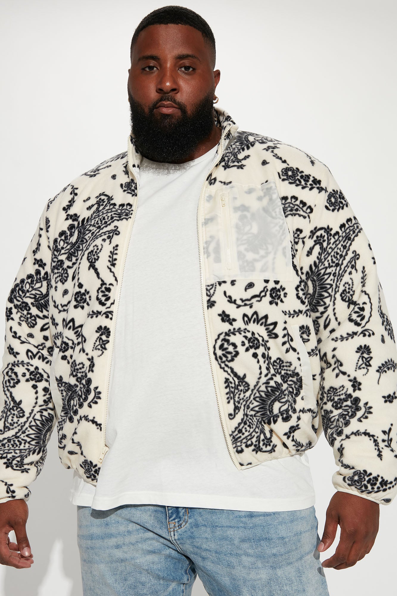 Going Up Paisley Printed Fleece Jacket – Cream Combo